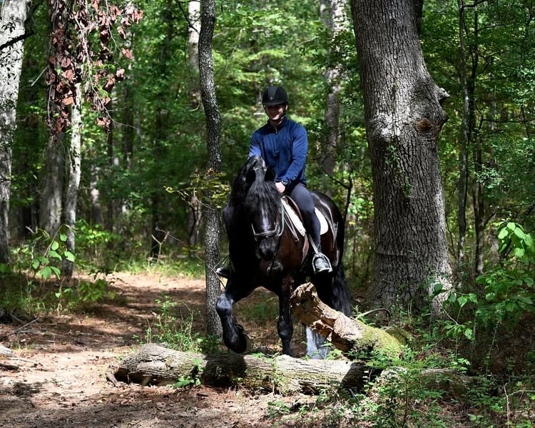 What a stunner! Marco is a 7-year-old black Friesian gelding standing a proud 17— and he’s every bit as sweet as he is striking. Marco isn’t your typical Friesian! This handsome boy is a total teddy bear, always the first to greet you in the barn and soak up every bit of attention. Under saddle, he’s a true gentleman — kind, willing, and ready to impress. ✔️ Schooling Level 1 Dressage – elegant, uphill, and naturally balanced✔️ Confident through obstacles, water, and trail work✔️ Loves bareback rides and attention in the barn✔️ Safe, easy to handle, and a joy to be around Marco has breezed through our program with flying colors and is ready to take his next partner far — whether that’s continuing in dressage, pleasure riding, or even driving. This exceptional gelding has all the talent, temperament, and presence to be a true star. ✨ Don’t miss your chance to make Marco part of your family! 📩 PM us for more information.