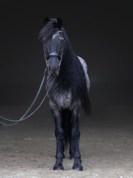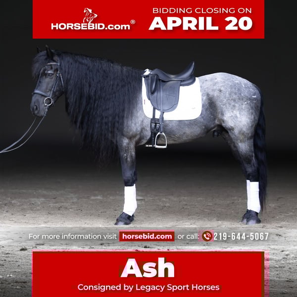 ⚜️𝐭𝐡𝐞 𝓔𝓵𝓲𝓽𝓮 𝐒𝐩𝐫𝐢𝐧𝐠 𝐂𝐥𝐚𝐬𝐬𝐢𝐜⚜️ Happening now thru MONDAY | APRIL 20th - Available EXCLUSIVELY on HorseBid's website! For more details and to register visit: www.Horsebid.com CONSIGNOR CONTACT: Legacy Sport Horses 219-644-5067 LOCATION: Michigan City, IN BREED: Friesian QH Cross REGISTERED: REGISTERED NAME: Ash COLOR: Blue Roan HEIGHT: 15 AGE: 8 GENDER: Gelding Ash is a Friesian/Quarter Horse cross with the kind of quiet, steady confidence that makes him a truly enjoyable horse to have in any program. He is naturally more “whoa” than “go,” with an extremely smooth trot and canter, a comfortable ride, and a calm, unbothered mindset. He is not spooky and handles new situations with a relaxed, sensible attitude. Under saddle, Ash is straightforward, reliable, and easy to ride. He has been ridden by a variety of riders and is the type that allows his rider to settle in and enjoy the ride. Whether in the arena or out on the trail, he stays consistent, relaxed, and willing, making him a great option for adult amateurs, younger riders, or anyone looking for a comfortable, confidence-inspiring partner. On the ground, Ash takes a little time to get to know new people, but once he does, he is very affectionate and enjoys attention. He is well-mannered in daily handling and easy to have around. Ash is the kind of horse that combines comfort, reliability, and personality. With his steady nature, smooth gaits, and striking look — including his signature long mane — he is a horse that is easy to enjoy both in and out of the saddle.