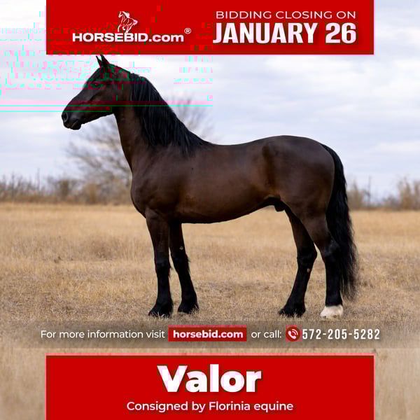 𝐉𝐀𝐍𝐔𝐀𝐑𝐘 ⭐️𝑨𝒍𝒍 𝑺𝒕𝒂𝒓 𝑳𝒊𝒏𝒆𝒖𝒑⭐️ Happening now thru MONDAY | JANUARY 26th - Available EXCLUSIVELY on HorseBid's website! For more details and to register visit: www.Horsebid.com CONSIGNOR CONTACT: Florinia equine 572-205-5282 LOCATION: Guthrie, OK BREED: Friesian REGISTERED: No COLOR: Black HEIGHT: 16.2 AGE: 8 GENDER: Gelding 🔥 VALOR 🔥 8-Year-Old Friesian / Percheron Gelding (75% Friesian / 25% Perch) The Ultimate Family + Show + Trail Partner If you’re looking for a horse that is as safe as they come, yet still athletic, elegant, and eye-catching, Valor is the kind that simply does not exist often. Valor is a true gentleman in every sense of the word — the same horse every single day. His middle name is SAFE, yet he has the presence, movement, and brain to step into almost any job you ask of him. ⸻ 🌟 What Makes Valor Special • Bomb-proof & kid safe deluxe • Perfect English AND Western • Pulls a wagon / carriage with ease • Show horse deluxe with size, presence, and movement • Trail rides like a dream — confident, steady, unbothered • Hauls anywhere, hauls often — seasoned traveler • Gentle, patient, forgiving • Athletic without being hot • Gorgeous Friesian look with bone and substance ⸻ 🐴 Ride & Temperament Valor is quiet, willing, and incredibly trustworthy. He takes care of his rider — whether that’s a child, a nervous adult, or someone wanting a classy, versatile partner. He is soft, responsive, and smooth, yet never reactive or silly. He has that rare combination everyone wants: Unshakeable mind + athletic ability + striking presence ⸻ 🎯 Perfect For: ✔ Family horse ✔ Youth or amateur rider ✔ English flat / lower-level showing ✔ Western pleasure or ranch riding ✔ Trail riding anywhere ✔ Wagon or carriage work ✔ Anyone wanting a once-in-a-lifetime safe horse that still turns heads ⸻ ✨ Final Thoughts Valor is the kind of horse people search for for years — safe enough for kids, classy enough for the show ring, and steady enough to trust anywhere. He has been there, done that, and does it all with a kind eye and quiet confidence. A true unicorn. A true gentleman. A true family treasure.