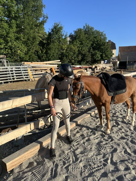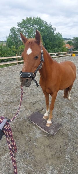 Hero is a lovely pony suitable for children and perfect for having fun with. He is friendly, affectionate, and gentle in his interactions, and he is low in the herd hierarchy. He can be easily led out of the stable and groomed by kids on his own, and he is absolutely attentive and gentle. Under saddle, he is ridden in walk and trot. When lunged, he can also do canter. According to previous owners, he has also been driven (I have videos of this), but we haven't done so ourselves since we don't have a cart. He loves groundwork and going for walks more than anything. He is familiar with children, cars, tractors, dogs, and the general hustle and bustle. He came to us with a sad and troubled past. He had to relearn to trust humans and overcome his fears. Now, he has become a wonderful children's pony. In the busy environment of our riding therapy center, he sometimes feels a bit lost, which is why we are looking for a great family for him and do not want to place him in riding schools. Of course, he sometimes has a bit of a pony stubborn streak, but he handles it very charmingly. Hero is still developing and is very motivated here. More photos and videos available upon request.