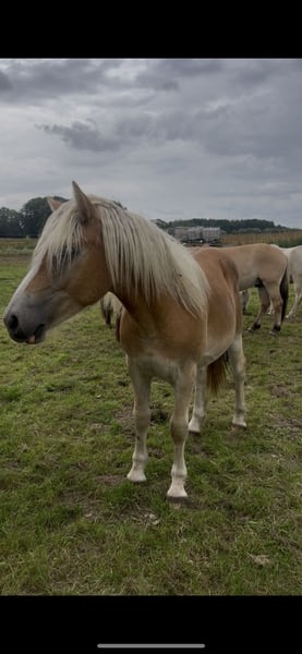 Schweren Herzens suche ich für meinen jungen Haflinger-Hengst ein liebevolles Zuhause. Er wird im Februar 2 Jahre alt und wird voraussichtlich mindestens 150 cm, eventuell größer. Er stammt vom Bundessieger Niclas Boy, einem Hengst, der durch seine überragende Leistungsprüfung und Titel wie Europachampion der jungen Haflinger im Springen überzeugt. Seine Nachzucht ist für Leistungsbereitschaft, schöne Bewegungen und Charakterstärke bekannt – Eigenschaften, die mein Hengst definitiv mitbekommen hat. Wesen & Umgang: Er ist unglaublich lieb, sanft und sehr menschenbezogen. Er lässt sich problemlos von jedem führen, liebt Aufmerksamkeit und zeigt sich in allen Situationen kooperativ. Putzen, Sprühen, Anbinden, Verladen oder das Auflegen der Decke – alles klappt ohne Probleme. Er wird auch nicht extrem kribbelig, wenn Stuten in der Nähe sind und man kann ihn problemlos von der Weide holen, ohne das er nach seinen Kumpels schreit. Einfach ein Engel in jeder Situation. Überzeugt euch gerne selber von seiner Art! Bewegung & Potenzial: Er besitzt 3 sehr schöne, elastische Gänge und bringt viel Talent für Freizeit und Sport mit. Mit seiner Abstammung und seinem Exterieur könnte er später groß rauskommen. Gesundheit: Dieses Jahr hatte er einmal einen Reheschub. Unter dem richtigen Management ist das sehr gut händelbar und seitdem komplett unauffällig. Transparenz ist mir wichtig. Ansonsten ist er gesund und ich hatte keine weiteren Probleme. Geimpft ist er und er wird regelmäßig beim Schmied vorgestellt. Warum ich ihn abgebe: Mir fällt die Entscheidung unfassbar schwer. Da ich jedoch bereits ein chronisch krankes Pferd habe, kann ich das Risiko nicht tragen, irgendwann beiden nicht mehr gerecht zu werden. Er verdient ein Zuhause, in dem er an erster Stelle steht. Ich wünsche mir Menschen, die seine Liebenswürdigkeit zu schätzen wissen und ihm ein Zuhause bieten, in dem er als Familienmitglied oder zukünftiger Sportpartner aufblühen kann. Videos vom laufen lassen können gerne versendet werden, am Sonntag bin ich auch bei ihm und kann dann noch aktuelle Bilder/ Videos verschicken. Bei Interesse freue ich mich über eine Nachricht. Platz vor Preis!!