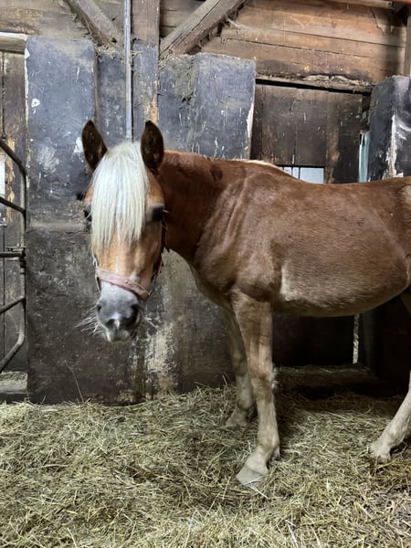 Zum Verkauf steht ein äußerst vielversprechender Haflingerhengst, geboren 2024, mit dem Namen Nando. Er ist ein Edelblut-Haflinger mit 2,735 % Blutanteil und überzeugt durch Sportlichkeit, Typ und eine hochinteressante Abstammung. Abstammung & Leistung: Vater: Nachtprinz (im Besitz von Bernhard Heisinger) – Sieger der Haflinger Körung 2022, Prämienhengst und Leistungshengst. Nachtprinz absolvierte seine Hengstleistungsprüfung 2024 mit einer Endnote von 7,71 und belegte damit den 2. Platz seiner Prüfungsgruppe – ein sehr solides Ergebnis mit Blick auf Rittigkeit, Grundgangarten und Leistungsbereitschaft. Großvater: Nachtstolz – mittlerweile Elitehengst aufgrund seiner überdurchschnittlich erfolgreichen Nachzucht und sportlichen Erfolge. Mutter: Abstammend von Aachen, einer bewährten Linie mit korrektem Fundament und gutem Wachstum. Erfolge: Siegerhengstfohlen bei der Fohlenschau – bereits früh durch Qualität, Ausdruck und Bewegung aufgefallen. Typ & Bewegung: Nando präsentiert sich als sehr sportlicher Haflinger mit überdurchschnittlichen Grundgangarten. Besonders hervorzuheben ist sein raumgreifender, taktsicherer Schritt, der deutlich über dem Durchschnitt liegt. Exterieur & Entwicklung: Aktuelles Stockmaß: ca. 1,43 m Erwartetes Endmaß ca. 1,50 m Sehr edler Kopf, ausdrucksstark, mit langer Mähne und harmonischem Gesamtbild Charakter & Umgang: Absolut brav im täglichen Umgang Regelmäßig beim Hufschmied Geimpft und entwurmt wird täglich zur Koppel geführt Geht problemlos auf den Hänger Perspektive: Aufgrund seiner Qualität, Bewegung und Abstammung bringt Nando alle Voraussetzungen für verschiedene Wege mit. Eine Vorstellung zur Körung im Herbst wäre denkbar, ist jedoch keine Voraussetzung für den Kauf. Ebenso ist eine Kastration problemlos möglich, sodass Nando sich auch hervorragend als sportlicher, verlässlicher Freizeitpartner entwickeln kann. Nando wurde von uns als zweites Absetzpferd gekauft. Da wir unseren Bestand verkleinern, suchen wir nun einen fördernden, neuen Platz, der sein Potenzial weiterentwickelt.