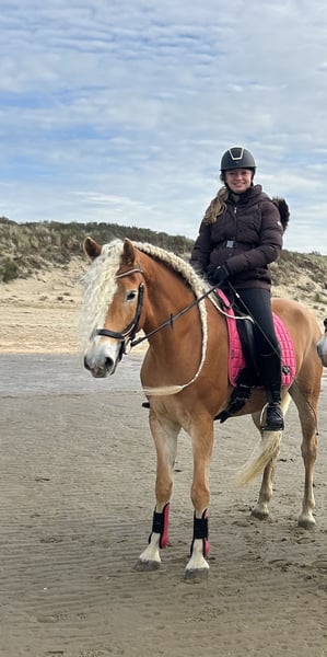 For Sale My First Lady is a 5-year-old Haflinger mare standing at 1.55 meters. She is a true eye-catcher with her long, flowing mane. She was born on May 5th, 2020. I bred her myself; her pedigree is Mi Lady vun der Millen x Liz Wales. She is registered with the KVTH studbook. As a foal, yearling, and 3-year-old, she was crowned champion at the regional keurings in the West. At three years old, she was officially entered into the studbook in Lunteren with a score of 77 points. At 3.5 years old, she delivered a beautiful stallion foal. She will also be very suitable for breeding purposes. She requires a confident and consistent handler, as she can still be somewhat dominant; she is a true mare. For more information, please send a private message.