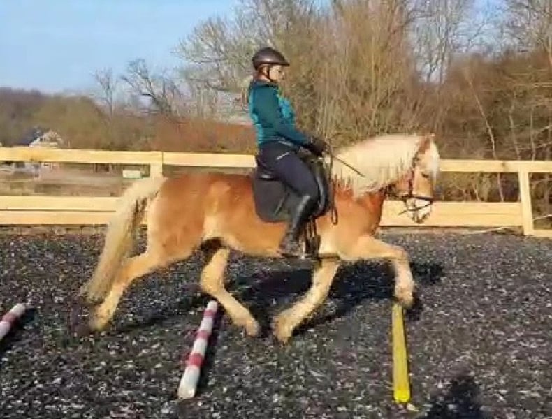 Wij zijn op zoek naar een liefdevol nieuw thuis voor onze 12-jarige Haflinger merrie. Vroni is volledig afstammingsgetrouw en van uitstekende afkomst. Ze is een zeer sportieve Haflinger, die onder het zadel zeer gemotiveerd is en plezier in haar werk toont. Vroni springt heel goed en geniet daar bijzonder van, maar ze is ook goed te rijden in de dressuur. Door haar nieuwsgierigheid leert ze snel, maar niet alleen de gewenste dingen. Ze heeft drie uitstekende basisgangen. In haar vorige omgeving is ze veelzijdig getraind, en deze afwisseling (grondwerk, springen, dressuur, longeren, buitenritten) zou ze ook in haar nieuwe thuis moeten blijven ervaren. Vroni kent kinderen, honden, water, tractoren en is in het terrein goed te hanteren en makkelijk in de omgang. Ze is niet bang, maar ook niet onverschrokken. Ze is geschikt voor recreatie- en wedstrijdruiters, maar moet wel verder uitgedaagd en gestimuleerd worden. Alleen een tot twee keer per week bewegen is niet genoeg voor haar. Ze wordt gehouden in een paddock met stal (24/7 weidegang met schuilstal), dus ze is ook sociaal in een kudde. Deze manier van houden zou ook wenselijk zijn voor haar nieuwe thuis. Ze is regelmatig gevaccineerd, ontwormd en haar tanden zijn ook regelmatig gecontroleerd. Momenteel is ze volledig voorzien van hoefijzers. Proefritten mogelijk tegen vergoeding.