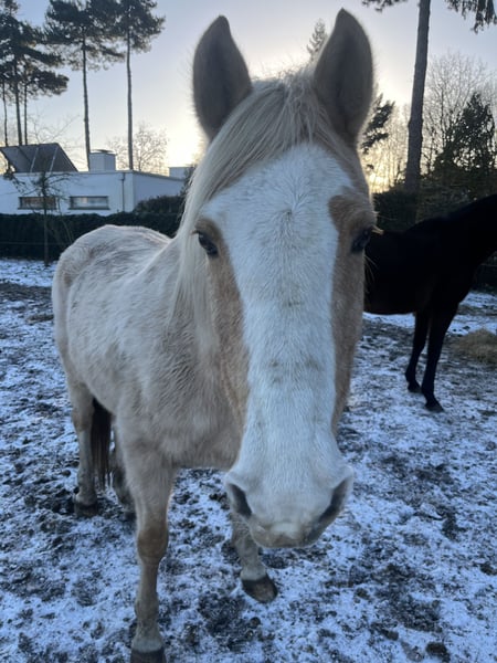 Beautiful Haflinger Mare for Free! Meet our charming Palomino Haflinger mare, (approx 15 years). Standing at 150 cm, she is the perfect size for a variety of riders and activities. With her gentle temperament and friendly nature, she is ideal for leisure riding and relaxed outings. Her striking golden coat and expressive eyes make her a true eye-catcher. This lovely mare has been well cared for and is suitable for experienced riders or as a companion horse. The original owner abandoned her and we took her 2 years ago but we need to downsize. Free to a good home!