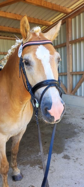 For Sale: Haflinger Mare – Perfect for Dressage! We are offering a charming Haflinger mare, born in 2022. Standing at 14.8 hands, she is ideal for riders seeking a reliable and friendly horse. She has a solid basic dressage training and shows great potential for further development. The mare is healthy, regularly vaccinated, and has been lovingly raised. She is friendly and well-mannered, suitable for both experienced riders and ambitious beginners. Please feel free to contact me for more information or if you are interested. Viewing and trial riding are available by appointment. Due to a mild summer eczema, she is being sold below value.
