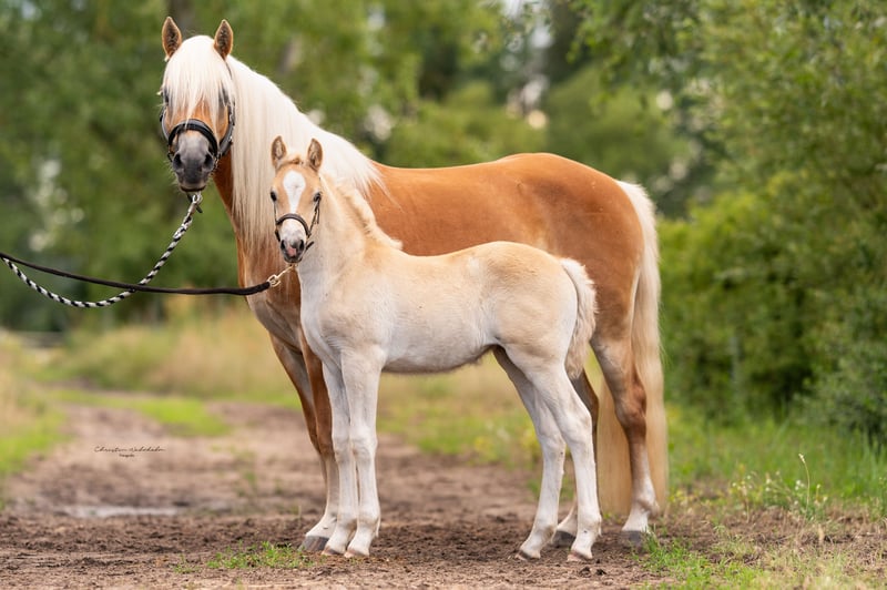 The wonderful Gertrude is incredibly people-oriented and affectionate. She is highly intelligent and knows how to present herself. She is familiar with the foal ABC and will only be sold with proof of lineage and registration. She has been dewormed multiple times and introduced to the farrier. She has a very good type and harmony. Furthermore, this mare has above-average movement! She was a championship foal! Interesting for sport and breeding. In the last pictures, you can see the father!