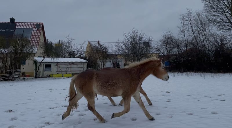 … mit keckem Charakter und tollen Gängen im modernen Reitpferdetyp, die sich hier tierisch langweilt, sucht ebenbürtigen Partner für gemeinsame Abenteuer. Wegen Aufgabe der Pferdehaltung schweren Herzens in gute fördernde Hände abzugeben, wo sie viel bewegt werden. Wir würden gerne beide zusammen abgeben. Da sie doch sehr unterschiedlich sind und wir für beide einen guten Platz suchen, ist auch Einzelkauf möglich. Dazu müsste man sich abstimmen, dass sie gleichzeitig den Stall verlassen, da wir haben keine weiteren Pferde haben. Beide durften ihre(n) ersten Sommer auf der Alm verbringen. Wir kauften sie im September 21 als Absetzer/Jährling von einem Tiroler Züchter (Nähe Ebbs), gewöhnten sie langsam ans Reiten, machen viel Boden- und Freiarbeit. Sie sind nun nach rund 4 1/2 Jahren liebevoller Offenstallhaltung bei uns am Bauernhof bereit für die weitere Ausbildung. Sie kennen Kinder, Hunde, landwirtschaftliche Fahrzeuge, Radfahrer, etc, Im Sommer bei vereinzelten Spaziergängen / Schrittausritten zeigten sie sich entspannt. Malena 5 Jahre, mit „Schnäuzel“: quirlig, frech (noch etwas unerzogen), schlau, aufmerksam, braucht jemanden, der sich von ihrem anfänglichen Gezicke nicht beeindrucken lässt, und regelmäßige Bewegung, kennt Reitergewicht im Schritt, Trab, Galopp. Man muss noch in der Mitte stehen (wurde aber seit gut einem Jahr kaum geritten und nur von unten bewegt, da ich eine langwierige Knieverletzung durch ein fallendes Scheunentor hatte und seit Mitte März frisch operiert bin) Raumgreifende federnde Gänge, wäre auch gut im Sport aufgehoben eher rangmittig, sucht schnell einen Kraulpartner, sehr intelligent, möchte Entscheidungen (mit-)treffen, dennoch Guter Teamplayer wenn man ihr Vertrauen gewonnen und ihren Hafi-Sturkopf überzeugt hat, Möglicher Schwerpunkt: Freizeit, Dressur, Fahren, Zucht. Sie sind sehr menschenbezogen und zutraulich, lieben es geputzt/gekrault zu werden. Malena, unser Prinzesschen, zickt anfangs gerade beim Putzen gerne (wehe du kraulst mich nicht an meiner Lieblingsstelle, da hab ich sie wohl etwas verwöhnt), ist aber händelbar. Sie können aber auch ihr Jungpferde-Temperament rauslassen. Bei regelmäßigem Training sind sie ausgeglichen und sehr sportlich. Mit ihrer Abstammung eignen sie sich auch gut für die Zucht. Für Malena ist reine Offenstallhaltung ungünstig, sie braucht v.a. um die Dämmerung einen Rückzugsort vor den Fliegen und viel Pflege, was sie in letzter Zeit bei uns zu wenig hatte. Sämtliches Zubehör kann, falls gewünscht, günstig mit erworben werden. Wir hoffen, es finden sich die richtigen Menschen. Bei ernstem Interesse gerne melden! Bettina