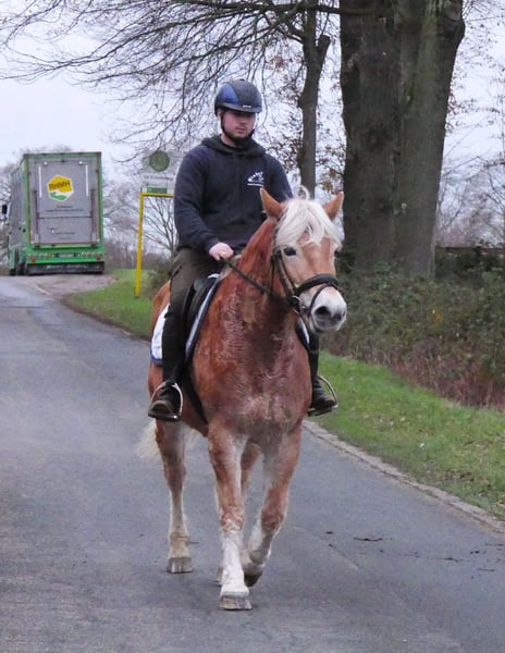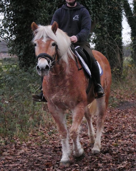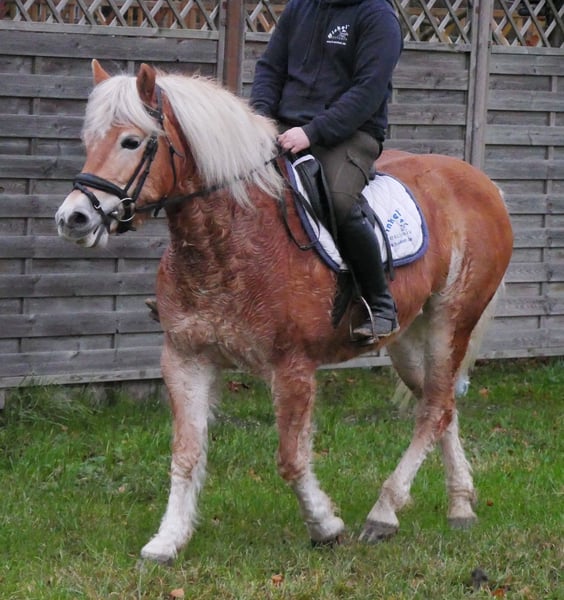 Name: Bella Alter: geb. 10.02.2017 Geschlecht: Stute Stockmaß: 142 cm Rasse: Haflinger Abstammung: Blitz van het Ravenhof von Bergquell x Stano von Stainz Zum Verkauf steht diese süße Haflinger Stute. Sie ist freizeitmäßig geritten kennt Halle, Platz und Gelände und lässt sich so schnell nicht aus der Ruhe bringen. Emma ist sehr brav im Umgang sowie unter dem Sattel und wurde auch schon von kleineren Kindern geritten. Sie ist neugierig , menschenbezogen und stand zuletzt in einem Offenstall zusammen mit einem Shetty. Sie deckt gut ab und würde sich auch für ein Mutter/ Tochter Gespann eignen. Alles weitere unter der Nummer 0176 62495567