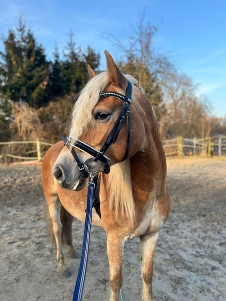 Schweren Herzens verkaufen wir unsere Edelbluthaflinger Stute. Zurzeit ist sie 9 Jahre alt und hat einen Stockmass von 1,47m. Sie ist ein ruhiges doch steht’s motiviertes Pony, sie akzeptiert Fehler und zeigt im Umgang sowie beim reiten keine Anzeichen von Ungehorsam, von daher ist sie auch ein gutes Anfänger/Wiedereinsteiger Pferd. Sie hat schon eine Auszeichnung als Verbandprämien Stute erhalten und durfte auch schon ein Fohlen zur Welt bringen. Sie ist Geländesicher sowie verladefromm. Wir sind öfter mal mit ihr woanders hingefahren und sind auch schon in fremden Geländen geritten, dort zeigte sie sich ebenfalls unerschrocken und brav. Desweiteren hat sie auch schon Tunier Erfahrungen, auf denen sie immer entspannt unterwegs war. Sie ist keine großartige springmaus. Kleine Sprünge macht sie allerdings gerne mal mit. Sie macht allen Quatsch an Schreck Training locker und entspannt mit. Auch ohne Sattel reiten ist kein Thema. Ein tiefenentspanntes ruighes Pony. Sie hat alle Impfungen und ist sehr gepflegt Sie läuft Barhuf und wurde regelmäßig den Hufschmied vorgestellt Wir wünschen uns für sie ein tolles Zuhause mit Menschen die sie lieben und verpflegen und wo sie einfach glücklich sein kann. Unsere Tochter hat sie direkt vom Züchter und begleitet sie mittlerweile seit 5 Jahren. Da unsere Tochter aber eine Liebe für das springen entwickelt hat, mussten wir leider diese Entscheidung treffen unsere Amy zum Kauf anzubieten. Zwei Pferde ist leider eins zu viel. Wir sind eine loyale Familie die ihr Pony in eine liebevolle Familie bringen möchte. Vielleicht gibt es ja ein Mädchen oder eine Dame , welches genau wie unsere Tochter vor 5 Jahren, ein Pferd zum juckeln und lieb haben sucht und sie viele viele Jahre begleiten möchte. Bei Interesse und Fragen meldet euch gerne hier oder unter folgenden WhatsApp Nummer: 01751242737