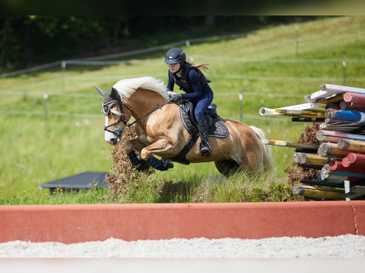 For sale is the 9-year-old Haflinger mare Diana. She has been very successful with me in competitions up to level A in dressage, jumping up to 85 cm, and eventing up to VH80. In training, she also masters the basics of all L-level exercises and is very easy and delicate to ride. In eventing, she is always motivated, reliably jumps everything in her path, and loves water. She is also very calm at competitions and is accustomed to being alone as well as staying overnight at shows. She is an absolute reliable partner, making her perfect for nervous riders, children, and beginners at competitions. She is completely fearless, very personable, and takes everything in stride. Diana enjoys hacking both alone and in a group. Additionally, she is theoretically backed in her training, although this has not been further developed in recent years. She loads easily into the trailer, is shod (4× shoes), and shows no bad habits either in handling or riding. Diana’s dam is the premium mare Donaufürsten (by Nestroy), and her sire is the well-established Steinkogel. She is also registered in the 2a studbook (see notes in the photo), making her an interesting prospect for breeding. Currently, she is kept in an active stable with about 15 other mares and a gelding. She is high-ranking within the herd. She is being offered because I am transitioning to a larger horse. She will only be sold into good hands — no traditional riding school operations.