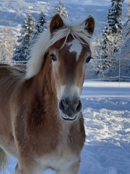 Ecco la traduzione in italiano del testo: Con la presente offro la mia puledra di Haflinger, nata il 14 maggio, di nome Raya. È una puledra dal carattere impeccabile, con un mantello chiaro e un'ottima andatura. Sua madre, che ho acquistato anch'essa da puledra nel 2021, ho imparato ad apprezzarla molto per il suo carattere fantastico e il comfort di cavalcata eccezionale (nelle ultime due foto si vede sua madre). Raya dovrebbe essere stimolata in modo adeguato alla sua età. Sarebbe ideale un impiego in attività ricreative, sportive o in allevamento. È possibile visitarla in qualsiasi momento. Verrà ceduta a partire da dicembre. Madre: Riley-B (Winzertraum x Anton) Padre: Noakley-BE (Nachtstolz x Staniero-BE)