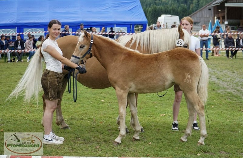 Feelia ist ein wunderschönes, liebes Haflinger Stutfohlen. Sie kennt das Fohlen abc, als auch das Hänger fahren. Bei der Fohlenschau in den Ossiacher Tauern konnten wir uns mit einer Wertnote von 8,0 für den Endring qualifizieren. Vater: Sturmkönig Mutter Vater: Mahatma