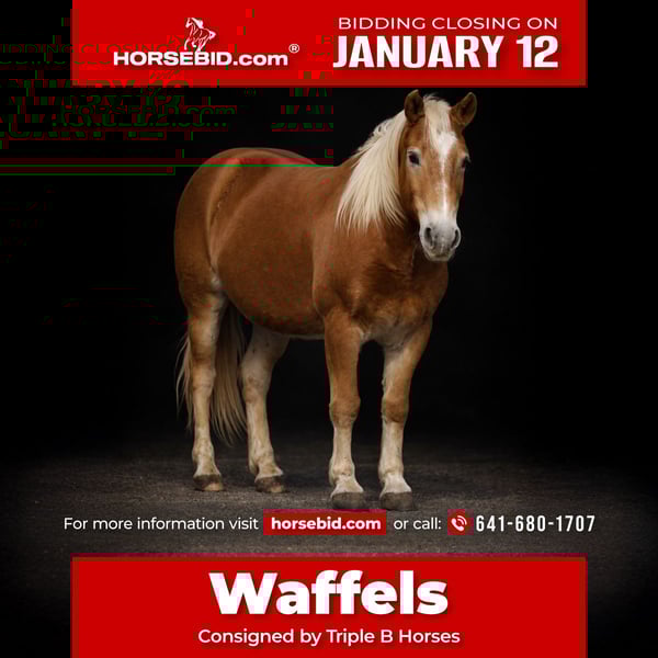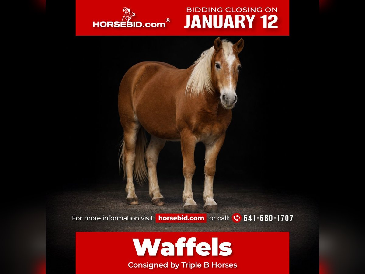 ♦️𝐍𝐄𝐖 𝐘𝐄𝐀𝐑'𝐒 𝑬𝒙𝒕𝒓𝒂𝒗𝒂𝒈𝒂𝒏𝒛𝒂♦️ Happening now thru MONDAY | JANUARY 12th - Available EXCLUSIVELY on HorseBid's website! For more details and to register visit: www.Horsebid.com CONSIGNOR CONTACT: Triple B Horses 641-680-1707 LOCATION: Plano, IA BREED: Haflinger REGISTERED: No COLOR: Sorrel HEIGHT: 13.2 AGE: 10 GENDER: Gelding Waffels- because clearly he has ate one to many meals sitting in a Waffle House 😂 13.2 hands of stacked waffels smothered in honey! 10 year old halflinger gelding! This guy is QUIET, GENTLE, SAFE AND SOUND! This is the kind of pony when the whole family gets home for the day mom can go inside and cook dinner while the kids go outside and ride all over the place without mom having to worry if the kids will make it back in one piece. He is the steddy eddy without a single care in the world as to what’s going on around him! Waffels has rode miles and miles of trails- take him down the sketchiest path you can find and I guarantee he will get you through it safely without a single bobble. He is extremely sure footed and knows to take his time to get his rider back home safely! He has also been to a few over night camps! He is not spooky of camp fires, bikes, wildlife, kids running around, or anything else you may encounter in that kind of environment! Waffels has also been rode through parades, and we’ve taken him on a few trips to town! He will walk up and down ramps and stairs with no issues. In the arena Waffels has the cutest little jog to him- despite his wide size he is smooth to ride! Waffels can be a little lazy about staying in a lope. Can you blame him though? He’s a barrel on short legs 😂 We have not found a single thing Waffels will spook at- we’ve carried balloons on him (with 40mph winds my rider was being attacked by them) drug a tarp, carried a flag- Waffels truly dosent mind anything you want to throw at him! Zero buck, bite, rear, or kick! Waffels has the best ground manners as well! He will stand tied, saddles easy, loads with no issues, great for the farrier! He is 100% sound and one of the best ponies you could ask for!