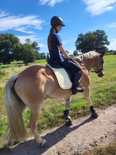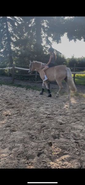 Our Haflinger mix gelding is a versatile horse with sporting talent. He has been trained in dressage, enjoys jumping, and impresses with his willingness to learn. Ideal for ambitious leisure riders seeking a horse with personality. Currently, the gelding lives in an open stable in a gelding herd but is also accustomed to box stall housing. As he is sensitive on the front hooves, he wears hoof boots (Duplos) in front at our stable, although he has been shod with shoes before. He cannot go barefoot due to this. He is not a pure children's pony or beginner horse, as he sometimes tries to assert his pony stubbornness and requires clear communication in handling. However, he is a true treasure under saddle, without stubbornness. Initially somewhat spirited but by no means nervous or uncontrollable. He has sweet itch, which can be well managed with a blanket. - Born: 2014 - Height: 15.0 hh - Gender: Gelding - Suitable for open stable and box stall housing - Social in the herd - Sweet itch - Front hooves shod or with alternative hoof protection - No tendency to escape, but sometimes pony stubbornness If you are looking for a horse that challenges you but also grows with you, this gelding could be your perfect partner. We look forward to hearing from you if you're interested.