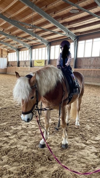 Unser Haflingerwallach Schach ist Seit zwei Jahren fester Bestandteil unseres kleinen Schulbetriebs, wo er mit seiner Rittigkeit und seinem Charakter immer wieder überzeugt und viele Kinder, Erwachsene und erfahrene Reiter:innen glücklich macht. Wir haben uns bewusst dazu entschlossen unseren Schulpferden nach ca. 2-3 Jahren einen Endplatz zu suchen. Schach läuft 4-5 Tage die Woche für ca. 1h im Schulbetrieb, geht regelmäßig in Beritt und wird bei uns weiter ausgebildet. Schach wurde gekört und hat die Hengstleistungsprüfung absolviert. Er ist in der Dressur auf A**-Niveau ausgebildet und zeigt deutliches Potenzial für L. Einzelne Lektionen beherrscht er bereits. Im Springen bewegt er sich sicher und mit Übersicht auf A**-Niveau, dabei stets aufmerksam, motiviert und mit viel Freude. Er hat seine gelassene und motivierte Art auf dem Turnier in Reiterwettbewerben bewiesen und viele Platzierungen geholt. Auch fremde Reiter:innen hat er auf Turnieren sicher durch den E-Parcour gebracht. Beim Ausreiten ist Schach brav und gelassen und zeigt sich stets zuverlässig, auch alleine. Wir können uns Schach für Wiedereinsteiger als auch ein Mutter-kind-Team gut vorstellen. Auch Erfahrene Reiter:innen werden viel Spaß mit ihm haben. Er ist Boxenhaltung mit täglich koppelgang gewöhnt. Schach ist ein Traum Pferd auf den man sich 100% verlassen kann und verdient eine Bezugsperson der er das täglich aufs neue zeigen darf.