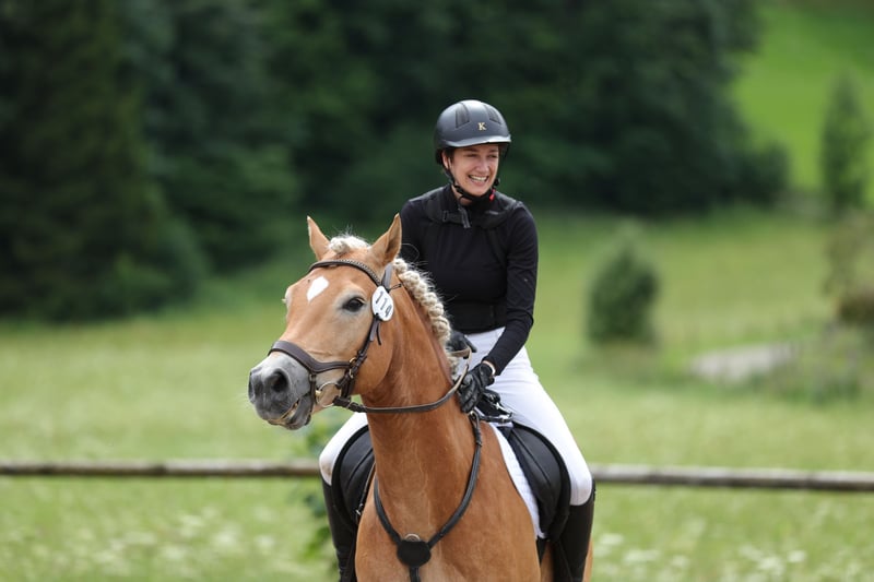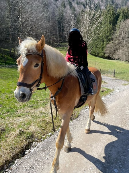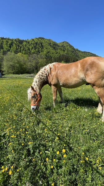 Our Haflinger gelding, Schach, has been a permanent part of our small riding school for two years, where he consistently impresses with his rideability and character, bringing joy to both children and adults. We have deliberately decided to find a permanent new home for our school horses after approximately 2-3 years. Schach is ridden 4-5 days a week for about an hour during lessons and is the ideal partner for children, beginners, as well as more advanced riders. Schach has been licensed and has completed his stallion performance test. He is trained up to A** level in dressage and shows clear potential for L-level. In show jumping, he moves confidently and with good awareness at A** level, always attentive and motivated. He has demonstrated his calm and motivated nature at competitions, earning numerous placings in rider trials. When hacking out, Schach is well-behaved and relaxed, always reliable. We can easily imagine Schach as a suitable partner for reintegration beginners or a mother-daughter team. Experienced riders will also have a lot of fun with him. He is accustomed to box stall housing with daily turnout. Schach is a dream horse and deserves a caring owner who can enjoy his daily trust and companionship.