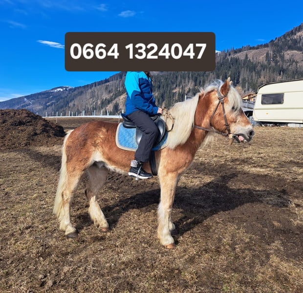 Beautiful, trusting, 13-year-old, white-maned Haflinger gelding for sale. Height approx. 1.50m. Delivery possible. For further information please call 0043 664 132 40 47