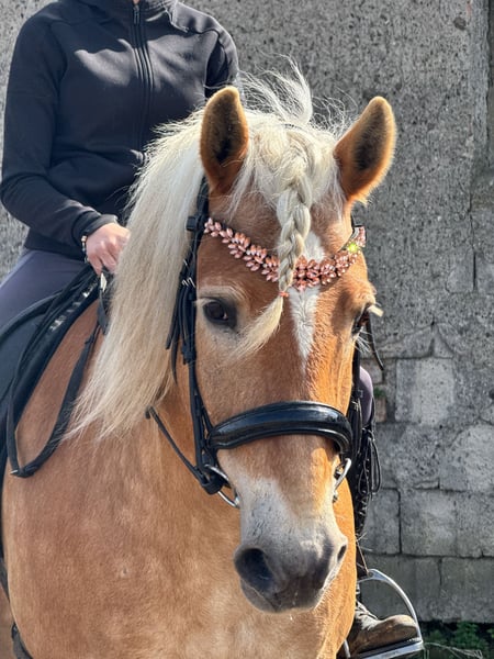 Wir geben unseren 17 Jahre alten Haflinger Wallach ab, er hat ein ungefähres Stockmaß von 1,50m und deckt sehr gut ab. Er ist super lieb und hat Spaß an der Arbeit, ob es in der Dressur ist oder beim Springen. Laut Vorbesitzer soll er auch Gefahren sein was wir aber nie Probiert haben. Bei ernsthaften Interesse schicken sie mir gerne ihre Telefonnummer und wir rufen mal durch Wir berechnen fürs probereiten 20€ um Reittourismus zu vermeiden was selbstverständlich beim Kauf angerechnet wird