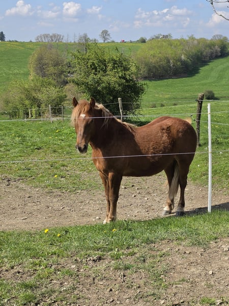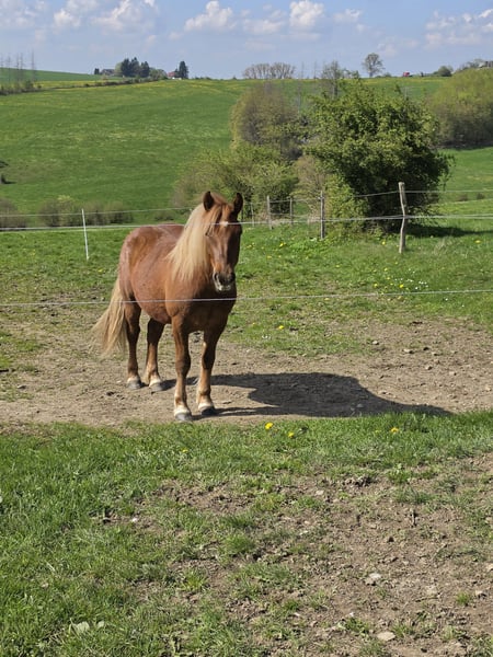 2 Jähriger Haflinger Schwarzwälderfuch Mix Wallach zu verkaufen. Vater unbekannt. Braucht eine sichere und konsequente Führung,kein Kinderpony! Testet alterstypisch seine Grenzen. Steht aktuell 24/7 draußen in einer Wallach Herde. Kennt Putzen / Führen / Schmied und Verladen, ansonsten roh. Aktuell ca. 145 cm groß wird vermutlich endmaß. Wird regelmäßig entwurmt / ausgeschnitten und ist gegen Tetanus und Influenza geimpft. Platz vor Preis.