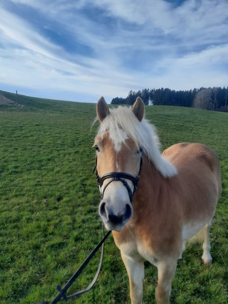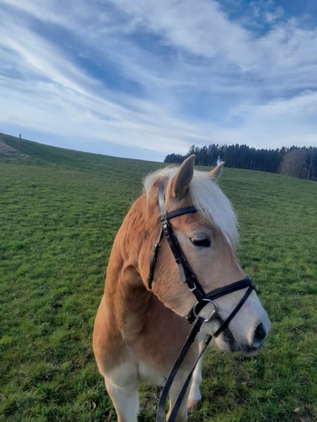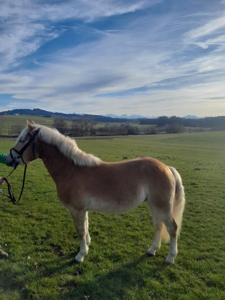 Unser Samu ist ein 4 jähriger reiner Haflingerwallach. Er ist mit seinen 145cm zwar nicht der größte, aber sein Herz ist dafür um so größer. Er wird regelmäßig entwurmt und auch beim Schmied vorgestellt. Auch Tetanus ist er geimpft. Aufgrund seiner Größe haben wir ihm noch ein Jahr geschenkt um sich noch weiter zu entwickeln und haben vor zwei Monaten mit der Grundausbildung angefangen. Er geht schon Schritt und Trab in der Halle. Dabei zeigt er sich sehr lernwillig und hat Spaß bei der Arbeit und will einem gefallen. Auch ist er schon im Gelände dabei, auch hier zeigt er sich sehr unerschrocken und hat Spaß dabei. Preis steigt bei weiterer Ausbildung. Momentan aufgrund seines Ausbildungsstandes NOCH nicht für Anfänger geeignet. Kann ihn mir aber bei weitere Ausbildung gut vorstellen auch für"schwächere" Reiter, oder Therapiepferd. Weiteres Video auf Anfrage.