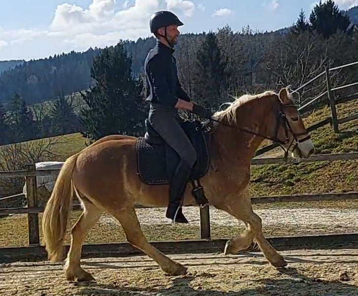 Wallach, Fuchs, 2022, 146cm, Woody van Seadrift x Wolfgang Zum Verkauf steht ein mittelgroßer Haflingerwallach mit einem überaus freundlichen Wesen. Wir haben Wedigo aus unserer Wolfgang-Stute selbst gezogen: aufgewachsen ist er in unsere Haflinger Hengstherde; angeritten und ausgebildet wurde er von uns in diesem Winter. Durch seine positive Arbeitseinstellung und seine freundliche Art macht es immer Freude mit ihm zu arbeiten. Er ist neugierig, freundlich und immer gelassen. Er ist mit drei soliden GGA ausgestattet, sehr verträglich in der Herde und natürlich Hufschmied und verladefromm.