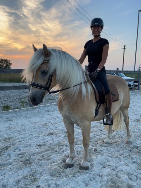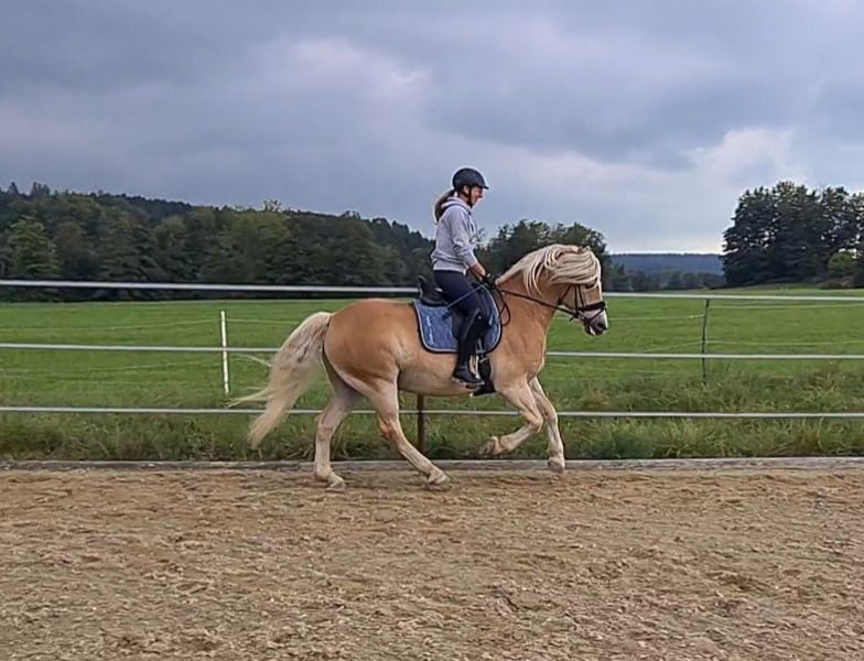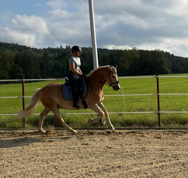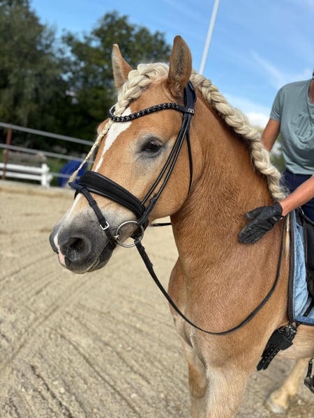 Zum Verkauf steht ein talentierter und bildschöner 5-jähriger Haflingerwallach, der mit sehr guten Grundgangarten ausgestattet ist. Dieser junge Wallach bringt alles mit, was man sich von einem modernen Haflinger wünscht! Er hat eine solide Grundausbildung genossen und ist altersgerecht gearbeitet. Navarello lernt wahnsinnig schnell und ich sehe ihn im gehobenen Dressursport. Auch das Freispringen macht ihm sehr viel Spaß, das Springen unterm Reiter wurde von mir nicht gefördert. Aufgrund von Zeitmangel meinerseits, wurde er noch nicht am Turnier vorgestellt. Allerdings war er schon auswärts auf Trainingskursen und Pferdemärkten, dort war er stets brav und unkompliziert. Auch im Gelände, ob alleine oder in der Gruppe, ist er verlässlich. Navarello, liebevoll Berti genannt, kam 2,5 jährig direkt aus Züchterhand zu mir und wurde von mir schonend angeritten und ausgebildet. Er hat keine Vorerkrankungen und war auch in meinem Besitz immer gesund. Berti ist Schmiede- und Verladefromm, er ist vorne beschlagen und lebt aktuell im Offenstall. Ich würde mir für ihn wieder einen Platz im Offenstall wünschen. AKU kann gerne auf eigene Kosten durchgeführt werden. Ein Kennenlernen und Probereiten ist jederzeit möglich. Um Reittourismus zu vermeiden sind beim Probereiten 30€ zu entrichten. Nur an Bestplatz abzugeben!