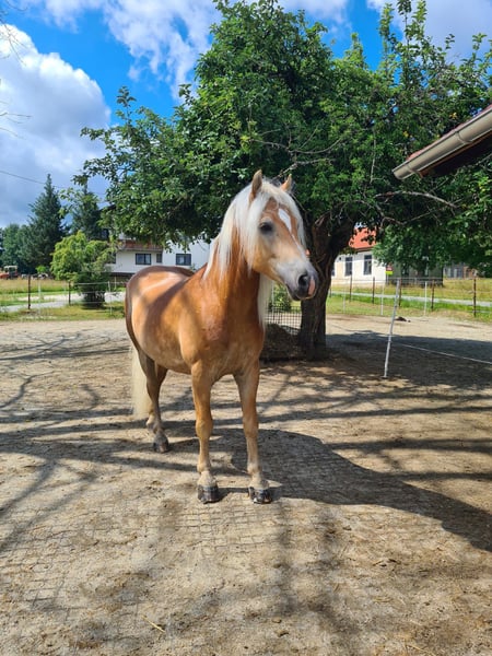 Te koop: een getalenteerde en prachtige 5-jarige Haflinger ruin, die beschikt over zeer goede basisgangen. Deze jonge ruin heeft alles wat je van een moderne Haflinger mag verwachten! Hij heeft een solide basisopleiding genoten en is leeftijdsadequaat getraind. Navarello leert ontzettend snel en ik zie hem in de hogere dressuursport. Vrijspringen vindt hij ook erg leuk, het springen onder de ruiter is door mij nog niet gestimuleerd. Vanwege mijn tijdgebrek is hij nog niet op wedstrijden voorgesteld. Hij heeft echter al buitenaf deelgenomen aan trainingscursussen en paardenmarkten, waar hij altijd braaf en gemakkelijk was. Ook in het terrein, of hij nu alleen of in een groep is, is hij betrouwbaar. Navarello, liefkozend Berti genoemd, kwam op 2,5-jarige leeftijd rechtstreeks van de fokker bij mij en is door mij voorzichtig ingereden en opgeleid. Hij heeft geen voorgeschiedenis van ziekten en was ook in mijn bezit altijd gezond. Berti is hoefsmid- en transportvriendelijk, hij is voorbeslagen en leeft momenteel in een open stal. Ik zou voor hem graag weer een plek in een open stal willen. Een keuring kan op eigen kosten worden uitgevoerd. Een kennismaking en proefrit is op elk moment mogelijk. Om ruitertoerisme te vermijden, zijn er kosten van 30€ voor de proefrit. Alleen beschikbaar voor een topplaats!