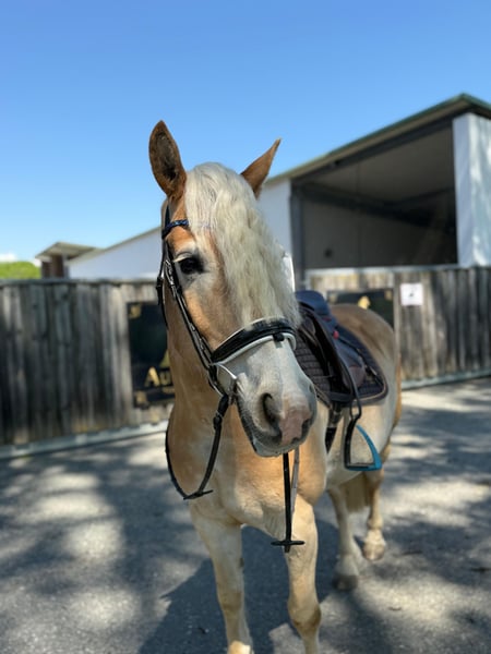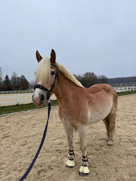 **For Sale: Haflinger Gelding** For sale is a beautiful Haflinger gelding, born in 2017. With a height of 155 cm, he is the ideal leisure partner for riders of all ages. This charming gelding impresses with his friendly nature and balanced temperament. He is perfect for relaxed rides and cozy hours in nature. His robust constitution and typical Haflinger character make him a reliable companion. The gelding is ridden for leisure purposes. He is well-mannered in handling, both when leading and grooming, loading, and with the farrier. However, Valentino is not a beginner's horse when ridden freely, as he reacts very sensitively. He excelled in guided lessons with small children. If you are looking for a loyal friend for leisure activities, then this Haflinger is just right for you! If you are interested or have any further questions, please feel free to contact me.