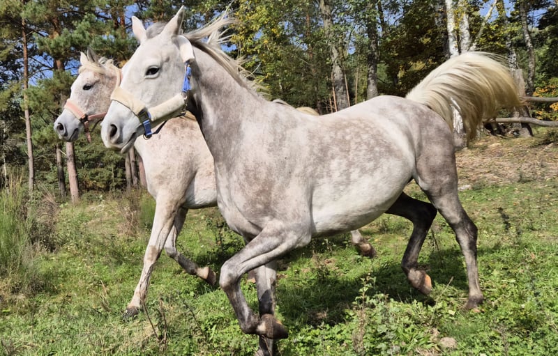 For sale is a charming mare imported from France, with excellent pedigree. She has competed in regional endurance rides of 40 and 80 km with very good results. I purchased her with the intention of competing in such endurance events, but my knee no longer allows it, so perhaps someone with similar ambitions will find her suitable. She is very well-behaved in her surroundings, with a strong, compact build. Under saddle, she is better suited for an experienced rider; she can be a bit electric at times, but she doesn’t buck or try to unseat the rider. Once you get to know her, she’s really enjoyable to ride. She is hardy, accustomed to traffic, and has participated in historical reenactments. She is 9 years old. I recommend her—she’s a horse that forms a strong bond with her owner. She has experience with cross-country jumping and jumps very confidently.
