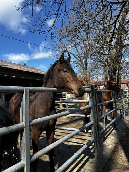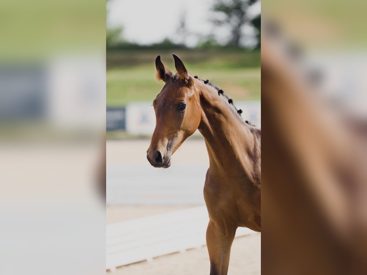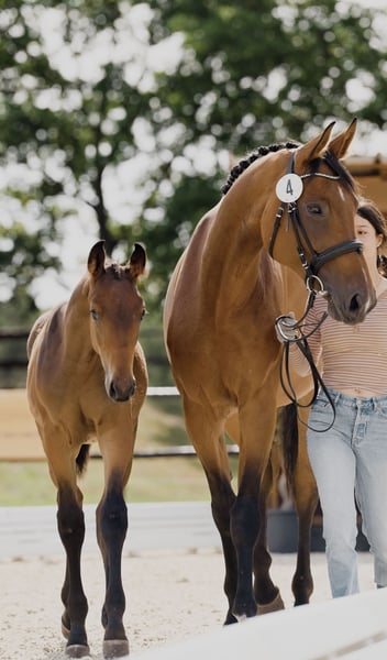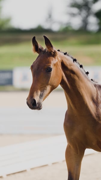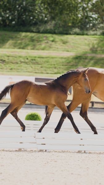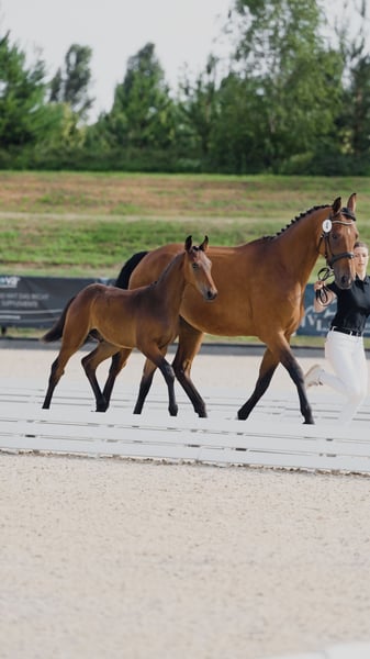 Hengst geboren 2025 von Zinedream aus einer Stolzenberg x Graf Top Mutter. Moderner und springbetonter Junghengst – athletisch, bewegungsstark und mit der Veranlagung eines topmodernen Springpferds. Er wurde als Goldfohlen vom Hannoveraner Verband prämiert und gehörte zu den Besten des Fohlenchampionats Bonhomme: Top-Noten für Typ (9,0), Körperbau und Gesamteindruck (jeweils 8,5). Er hat sehr viel Ausstrahlung, ein korrektes Exterieur und einen sehr guten, balancierten Galopp. Besonders hervorzuheben ist sein lieber, aufgeweckter und zugewandter Charakter! Dank seines feinen Wesens und seiner herausragenden Springabstammung eignet sich dieses Jungpferd sowohl für ambitionierte Amateure als auch für Profis hervorragend. Der Hengst ist regelmäßig an der Hand, kennt das Fohlen-ABC und ist in optimalem Pflegezustand. Regelmäßig beim Schmied, regelmäßig entwurmt, gechippt, kerngesund. Aus liebevoller und fürsorglicher Privatzucht. Auf dem letzten Bild ist seine Mutter zu sehen.