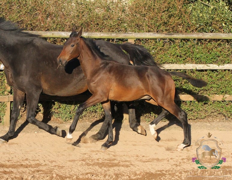 His sire is the Fully Approved Hanoverian stallion, DON AQUI, who was licensed at the Main Hanoverian Stallion Licensing in Verden in October 2000. He passed his 30 day test in Zweibrücken scoring two 9s for his jumping. In 2002 he was very successful in Material/Young Dressage Horse Classes, along with being placed in the Young Showjumping Horse Classes. He then went on to start his eventing career under Jan Büsch by qualifying for the Bundeschampionate in the 5 Year Old Eventing Championship. He qualified for the finals where he was placed 10th!! In the official Hanoverian magazine "DER HANNOVERANER" is stated: "Scene applause und enthusiastic whistling received for Don Aqui v. Don Bosco/Gardeulan (Z.: H. Heineking, Raddestorf) with Jan Büsch in the final. But the judges assessed the round differently. The black proved a consistently good manner and leg technique in front at the jump and showed an energetic canter." DON AQUI has sired numerous sport horses across all three disciplines showing how versatile his stock are and given his limited breedings, also shows what a great disposition he has for producing top quality sport horses. You can find out more here on his own web page- https://www.mfsstudfarm.com/mfs-don-aqui.html Dam of this fabulous colt is the KWPN bred mare WINDEKIND. This exceptional mare has been a proven breeding mare here at the Studfarm for several years. Continually producing Premium and Elite Premium awarded foals by top studbooks of the KWPN and the Oldenburg Verband. She is dam to several competition horses, MFS HUGO BOSS v Belstaff, MFS VOGUE v Valderde, the 1.30m showjumping gelding MFS CASINO ROYAL and MFS NEVERLAND. MFS NEVERLAND was in the top three placed 6 year olds at the British Dressage National Championships in 2024. In 2025 he once again qualified for the Finals of the 7 Year Old Championship, where he was placed 6th overall under his new rider, the Irish Olympic rider, Abi Lyle. The new partnership are now contesting Advanced Medium level dressage. Windekind is by the top sire, SIR SINCLAIR out of a FERRO mare. Sir Sinclair is one of the most prolific sires of FEI dressage horses worldwide. He was ranked the #1 USEF Dressage Sire for six consecutive years, 2015-2020, and has been in the top five ever since. He was awarded the prestigious Keur predicate by the KWPN for his excellence as a sire. He has sired numerous Grand Prix horses, including Dee Clair, Caymus, Cantata, Con Brio SDF, Zuperman, William, Air Marshall, Warina, Westerstorm and Zania. He also has dozens of sons and daughters competing at the FEI level around the world. He is the sire of one Approved stallion and two licensed sons, as well as numerous Sport, Preferent, Elite, Keur and Star offspring. Other impressive titles earned by Sir’s offspring include first place in CDI3* Grand Prix classes, numerous USDF Horse of the Year and USDF All Breeds Horse of the Year Awards at FEI level, GAIG/USDF Regional Championships, KWPN-NA North American Championships, and so much more. This fabulous dark brown colt is very reasonably priced due to the fact we expect him to mature to around 16.1hh. He is so much personality, three correct gaits and with his bloodlines. He will make a fantastic sports horse in the right hands and we know he will excel in any discipline. https://www.mfsstudfarm.com/mfsstudfarmforsale.html