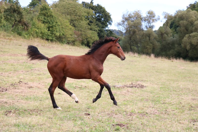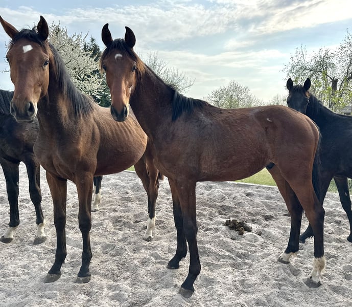 Hengstjährling von Von und Zu (LG Celle) S-Dressur erfolgreich der Mutterstamm bringt SPORTLICHKEIT aber auch CHARAKTER und RITTIGKEIT mit ! Mutter StPrSt, Rpfd. erfolgreich und Herwart v.d. Decken Schau 1e-dekoriert, sie ist MEGA LIEB und RITTIG und vererbt das auch durchschlagend an ihre Nachkommen, leistete auch sehr gute Dienste als erstes Umsteigerpferd für junges Mädchen, das aus dem Pony rausgewachsen war Großmutter, auch StPrSt mit guter SLP, Rpfd-Reserve und nach der Zucht als leistungsbereites Freizeitpferd (Dressur und Springen, auch Turnier) an Dame verkauft er ist langbeinig, korrekt, sehr edel, mit 3 guten Bewegungen, anhänglich und interessiert direkt vom Züchter aus erster Hand