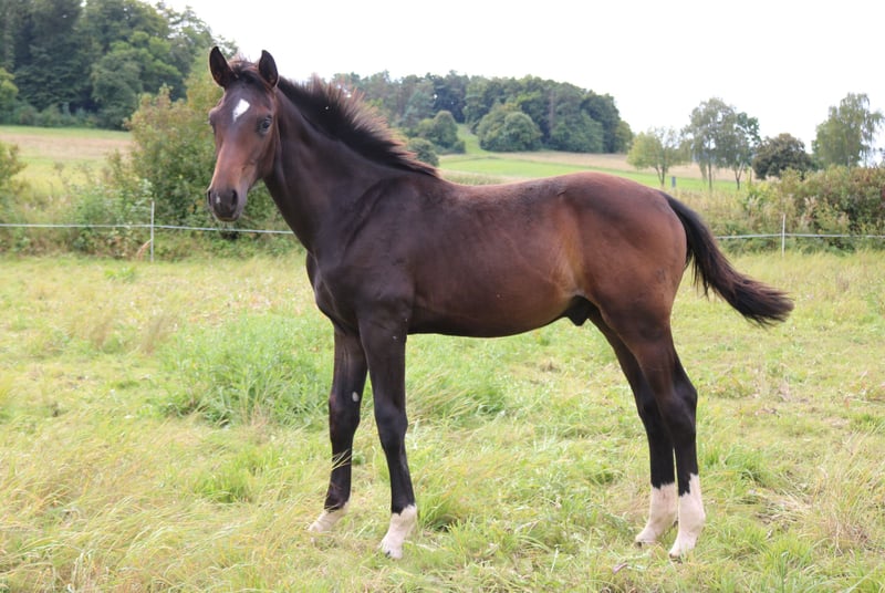Kräftiger, großwüchsiger Hengstjährling mit guten Bewegungen Mutter StPrSt mit Eigenleistung in Rpfd. und Dpfd-A, sowie Springen bis Springpfd.-L vorgestellt und Military-Training aus dem fallenden Stamm mehrere erfolgreiche Dressurpferde Vater ELASTIC aktuell unter der Profi-Reiterin Dorothee Schneider direkt vom Züchter aus erster Hand, kleinere familiäre Zuchtstätte