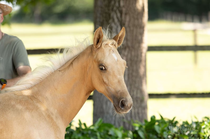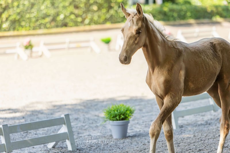 Quinario B Qandide x Bonifatius x Londonderry We are offering our colt Quinario born this year for sale. He was born on March 25, 2025. Due to his sire, he is a very handsome light Palomino. He has very long legs, a lively canter, an outstanding trot, and a strong walk. At the foal show, he was awarded Reserve Champion for these qualities. Quinario is very independent and completely fearless. Traffic noise, hot air balloons flying low, fireworks, and music bands do not bother him. From his first week, we start training the foal’s basics, so all our foals are halter-trained, load easily, and are familiar with the blacksmith and veterinarian at the time of sale. They learn to recognize all daily sounds on the farm and are accustomed to dogs. Our mares with foals graze together on 2.5 hectares of pasture during summer, day and night. In autumn and winter, they are outside for 10-12 hours during the day with 24/7 hay and housed in large foaling stalls at night. This ensures the foals grow up very well and get used to all weather conditions and temperatures right from the start. He is the fifth foal of his dam. Beautiful Mind 8 is a very elegant, beautiful state premium candidate from the Juggema dam line. She is dark bay and approximately 168 cm tall. Her first foal, a black stallion by Goldberg, was sold immediately after birth. Her second foal, a black stallion by Despacito, was sold at the Hannoveraner Elite Auction to Spain. Her third foal, by Franziskus, was awarded and is currently in training with his rider. You can follow him on Instagram. Her fourth foal, Felisa, is with us and can be visited. Beauty is incredibly affectionate and gentle, consistently passing on this intelligent and lovely temperament to her foals. Like all our mares, Beauty has been tested and is WFFS negative. Dam line: Grafitti v. Graf Top (DRE: S** success with Elisabeth Beneke-Backhaus); Saphir v. Sunlight xx (VS: international CIC*** success with Gerd-Olaf Neuberg); Dorian Gray v. Don Picardi (VA 2009: €47,000, DRE: S* success with Katrin Alkenings); Licensed stallion Desperados FRH v. De Niro (VA 2003: €104,000, individual bronze and team gold at the 2016 Olympic Dressage, ridden by Kristina Bröring-Sprehe); Don Diego v. Don Frederico (VA 2007, DRE: international GP success, bronze medal at the U25 European Championships 2016 with Juan Pablo Matute Guimon); Licensed stallion Don Noblesse v. Dancier (DRE: international GP success with Susan Pape); Weneziano v. Wolkenstein II (DRE: international GP success with Martina Steisslinger); Acrobat v. Acord II (SPR: success at 1.40 m show jumping with Philipp Ulrich). The sire, Qandide, is a handsome Cremello stallion who passes his calm, composed nature to his foals. We previously had a foal from him out of a different mare and can clearly see the similarities. Both are very similar in their relaxed, unshakable demeanor. Qandide is free from ECVM and WFFS. More information about him can be found at https://www.hengste-rohmann.de/qandide We prioritize good upbringing and transparency, so you can follow our breeding progress daily on Instagram. Of course, Qandide can also be visited and viewed at our farm. A current video of him in motion can be made and sent upon request. The last photos show his dam and previous offspring. He is still with us but will soon move to a top-class upbringing facility. The stall space can be taken over if desired. If interested or if you have any questions, please contact us via message, WhatsApp, or phone. Phone: +49 152 53765924