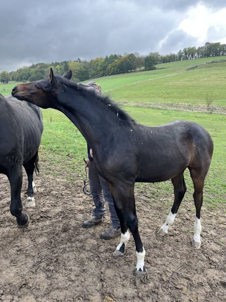For sale is our strikingly beautiful, long-legged, and versatile colt by Vidar. Born May 11, 2025 Sire: Vidar Dam Sire: Stolzenberg Temperamentally, he is an absolute sweetheart and is learning everything he needs to know at his age. He is raised in a close family environment. Estimated final height is around 17.1 to 17.3 hands. Priority is given to space over price!