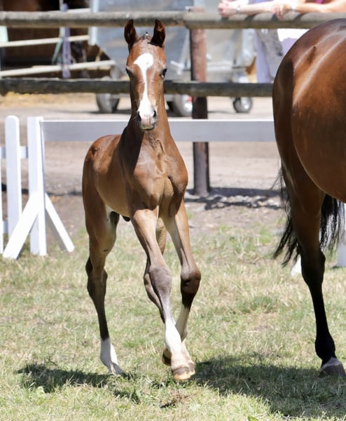 Bildschönes Hengstfohlen von Bon Esprit aus einer bewegungsstarken Stute von Rock Springs (Rock Forever) x Beluga (Brentano II) Beherrscht das Fohlen ABC, steht in einer kleinen Hengstgruppe im Laufstall und wird täglich am Halfter aufs Paddock rein & raus gebracht. Auf der Fohlenschau zeigte er direkt was in ihm steckt und so bekam er vom Hannoveraner Verband die Goldprämie verliehen. Ein "sehr edles und formschönes Hengstfohlen" wie ihn die Richter sehr passend beschrieben. Bewegungsstark, bildschön und allen voran sein Traumcharakter zeichnen ihn aus.