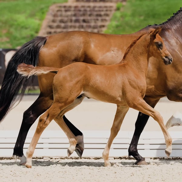Dieses bewegungsstarke Dressurfohlen von Morricone I besitzt drei sehr gute, elastische Grundgangarten und ein korrektes Exterieur. Auf dem Fohlenchampionat am Gestüt Bonhomme wurde es hoch bewertet und erhielt die hervorragende Note 8,6 für die Bewegung! Bildschön, neugierig und freundlich im Umgang. Aufgrund seiner erstklassigen Dressurabstammung für ambitionierte Amateure und für Profis gleichermaßen eine vielversprechende Wahl. Kerngesund, aus renommierter Züchterhand mit optimaler Betreuung, korrekt entwurmt und dem Schmied vorgestellt. Wir freuen uns über Ihr Interesse und zeigen Ihnen das Hengstfohlen gern vor Ort! Kontaktieren Sie uns auch per WhatsApp: +49 176 55323449. Der Vater dieses besonderen Fohlens ist kein Geringerer als der international gefeierte Morricone I (Gestüt Bonhomme), der selbst bis Grand Prix erfolgreich ist. Seine Nachkommen sind für ihre herausragende Athletik, Rittigkeit und Ausbildungsbereitschaft bekannt – bei Reitern äußerst begehrt und sportlich überaus erfolgreich. Morricone I gilt als Spitzenvererber von außergewöhnlicher Qualität: Körungssieger, HLP-Dressursieger (viermal die Traumnote 10,0), Hauptprämiensieger, VTV-Hengst des Jahres 2021, Finalist im Nürnberger Burg-Pokal, Louisdor-Preis-qualifiziert und vielfach siegreich bis Grand Prix. Auch die Mutterlinie vereint hochkarätige Leistungsgene: Über Don Martillo (Weltmeister der 5-jährigen Dressurpferde) und Franziskus FRH (Olympiakader Dressur) führt die Abstammung direkt in den leistungsstarken Stutenstamm des Olympia- und Grand Prix-Pferdes Elvis VA. Unter Nadine Capellmann gewann Elvis VA Teamgold bei den Olympischen Spielen 2008, Teamgold bei der WM 2006 sowie Teamsilber bei der EM 2007. Hannoveraner Stutenstamm der Nagiaza: Gekörte Hengste: Belong To Me (v. Bonaparte N, 1,20m Springen, L-Dressur, CCI3*), Calido's Son (v. Calido, 1,35m Springen), Can‘t Stop The Feeling P (v. Comme Il Faut), C-Mocca D'Or (v. Monte Bellini, 1,35m Springen), Dark Cloud (v. Dancier), Diaro Gin (v. Diacontinus, 1,35m Springen), Don't Stop Me P (v. Diamant de Plaisir), Edgar (v. Espri, 1,30m Springen), Emotion B (v. Emerald van 't Ruytershof (Emerald N.O.P.), 1,25m Springen), Frisantos (v. Franziskus), Galino (v. Graf Grannus, 1,35m Springen), Garant (v. Garibaldi II, 1,35m Springen), Glenn Miller (v. Gardeulan I), Golfball (v. Grenadier), Grand Ferdinand I (v. Grande, 1,40m Springen), Grand Ferdinand II (v. Grande, LG Celle), Quidam Stakkato (v. Quidamus, 1,35m Springen), Quintet (v. Quintender, 1,45m Springen), Ratino (v. Rousseau), Visano (v. Van Gogh), Wyclef Jones (v. Weltmeyer, L*-Dressur). Dressurpferde: Callaho Socrates (v. Stakkato, 1,10m Springen, PSG/Inter I), D.J. (v. Del Piero, M*-Dressur), Don Laurus (v. Donjour, PSG/Inter I), Duvalier (v. Davignon I, M**-Dressur), Elvis VA (v. Espri, Grand Prix), Felicity Romance (v. Fürst Romancier, M**-Dressur), Legolas (v. Don Primero, M*-Dressur), Liander K (v. Lingh, M*-Dressur), Principessa Dapolar (v. Prinz Pilot, M*-Dressur), Quam Libet (v. Quaterback, Grand Prix), Quentin Tarantino, (v. Quaterback, M*-Dressur), Saimir v. Scolari (M*-Dressur), Salt Lake (v. Stedinger (M*-Dressur), Scolari's Sixpack (v. Scolari, PSG), Senor Pepe (v. Sir Donnerhall, PSG/Inter I), Simply Magic (v. Stedinger PSG/Inter I), Stravinsky (v. Stedinger, Grand Prix), Sun Dancer (v. Scolari, S-Dressur), Whitney W (v. Weltmeyer, M*-Dressur). Springpferde: Balouness (v. Balou du Rouet, 1,50m Springen), Caja (v. Cornet Obolensky, 1,50m Springen), Callaho Lord Cris (v. Lord Z, 1,55m Springen), Carlosspri (v. Carlo, 1,45m Springen), Catch me if you can (v. Colway Bold xx, 1,40m Springen), Chacca Blue (v. Chacco-Blue, 1,40m Springen), Clausewitz (v. Continue, 1,60m Springen), Cortney-Cox (v. Carlo, 1,60m Springen), Curo (v. Cornado I, 1,45m Springen), Czwerg (v. Clinton, 1,40m Springen), Dolittle (v. Dinard L, 1,40m Springen), Elegance (v. Escudo II, 1,60m Springen), Graphit 41 (v. Grenadier, 1,35m Springen, L**-Dressur), Little Esprit (v. Espri, 1,45m Springen), Loyd (v. Lord Caletto, 1,40m Springen), Severino P (v. Sion, 1,45m Springen), Sierra (v. Silvio I, 1,60m Springen), Suzi Quatro (v. Stakkato, 1,40m Springen), Swedish Dynamite (v. Callaho's Sampras, 1,45m Springen). Bilder und Videos: MovingMemories @movingmemories.official / instagram.com Privat (freundliche Genehmigung)