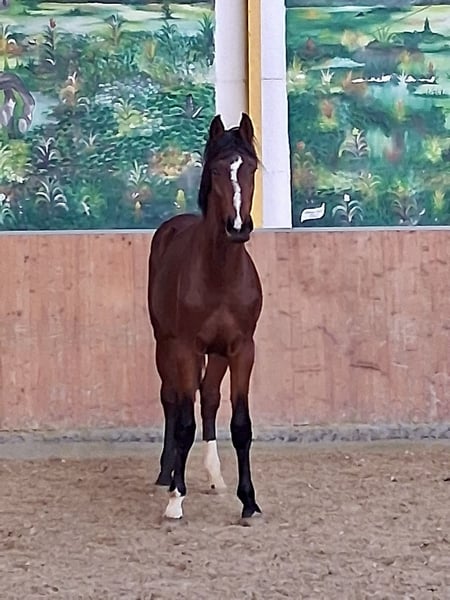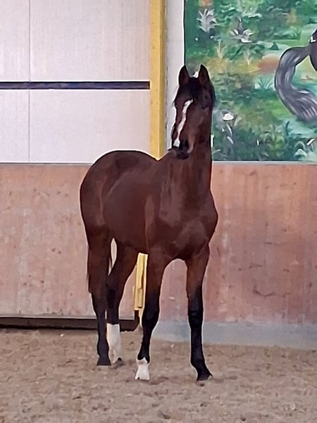 Pouliche de l'année au caractère affirmé, issue du champion Westphalien de 2022, Extra Gold, descendant du pedigree WEISSENA, Oldenburger Stamm 213, et d'une mère très expressive par Lavagon - Pavarotti v.d. Helle. La mère elle-même a obtenu d'excellentes notes lors de son test de performance, avec une note de 9,0 en pas et en saut en liberté. Un mâle avec une constitution parfaitement correcte, une expression de mâle impressionnante, une mécanique de mouvement exceptionnelle et un caractère remarquable. Un candidat stallion sans aucun doute, représentant une prometteuse perspective pour l'avenir. Je reste à votre disposition pour toute information complémentaire. N'hésitez pas à me contacter via WhatsApp au +49 151 19526002. Cordialement, Stefanie Steinhauf Gestüt Babiacki
