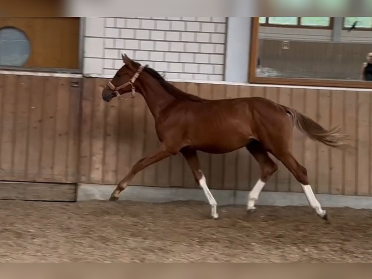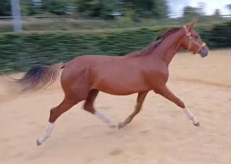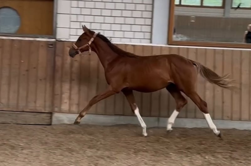 Dieser außergewöhnlich typvolle Jährling von Kjento x Bonds x Rubitano überzeugt auf ganzer Linie mit drei überragenden Grundgangarten, viel Schwung und hervorragender Balance. Er zeigt von Anfang an Präsenz, Gelassenheit und ein ausgesprochen feines Interieur. Seine Typausprägung, Bewegungsqualität und sein korrektes Fundament machen ihn für uns zu einem klaren Hengstanwärter mit Zukunft in Zucht und Sport. Ein echter Hingucker mit viel Qualität, Charme und Ausstrahlung – interessant sowohl für ambitionierte Reiter als auch für Züchter und Hengstaufzüchter. Das Video ist von Juli 2025