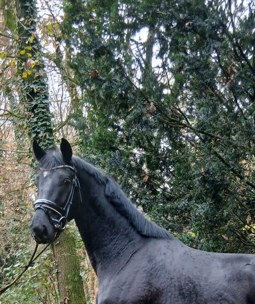 The stallion has three excellent gaits, with a very active hind leg. He comes from a top dam line with many approved stallions and successful sport horses. He is lunged regularly. Currently without shoes. Very well-behaved in handling. A comprehensive veterinary report is available. He was licensed at the main licensing in Verden. Due to an incidental X-ray finding, he is being sold well below his value.