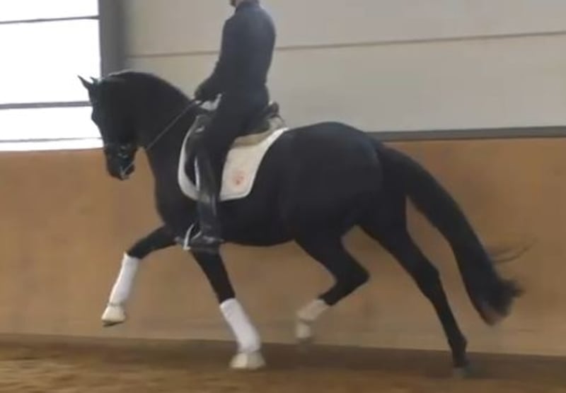 Frisch angeritten und schon hoch anständig. Auf dem Video erst wenige Male mit Reiter auf dem Rücken.