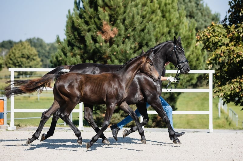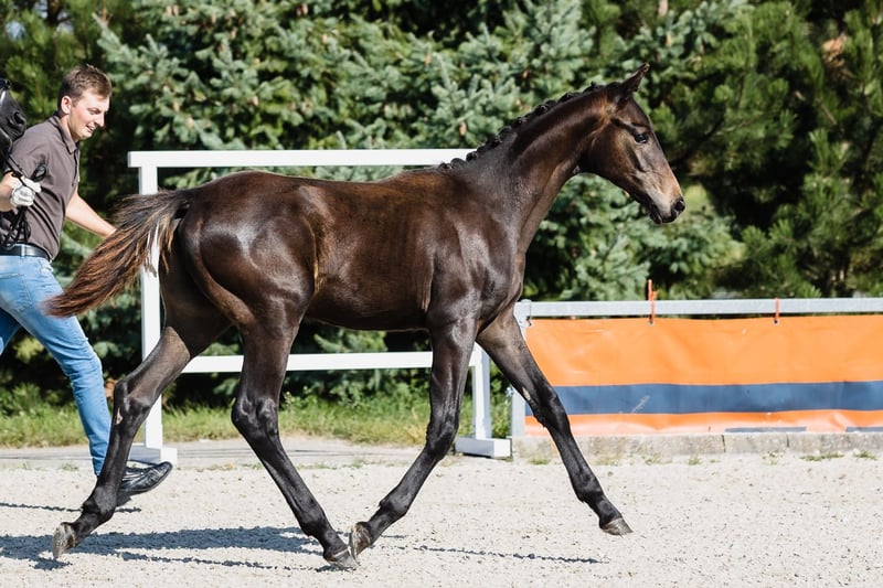 Despacito is a very typey, radiantly beautiful, and strong colt by fabulous Dynamic Dream to whom he bears extreme resemblance, and from great Hanoverian mare Diva Gora. His type, building, and foundation are great, his leg conformation is also correct. He beautifully engages his hind end. His nature is so ingenious, he is incredibly trusting and people-oriented, like all offspring from this mare. His pedigree includes many legends of dressage horses, such as his father, Westphalian stallion Dynamic Dream (won licensing in Westphalia, received premium scores 9.0s for trot and canter, 10.0s for willingness to perform, temperament, and character in Denmark), Don Federico, and Florestan. He will be able to compete on high level in dressage contests.