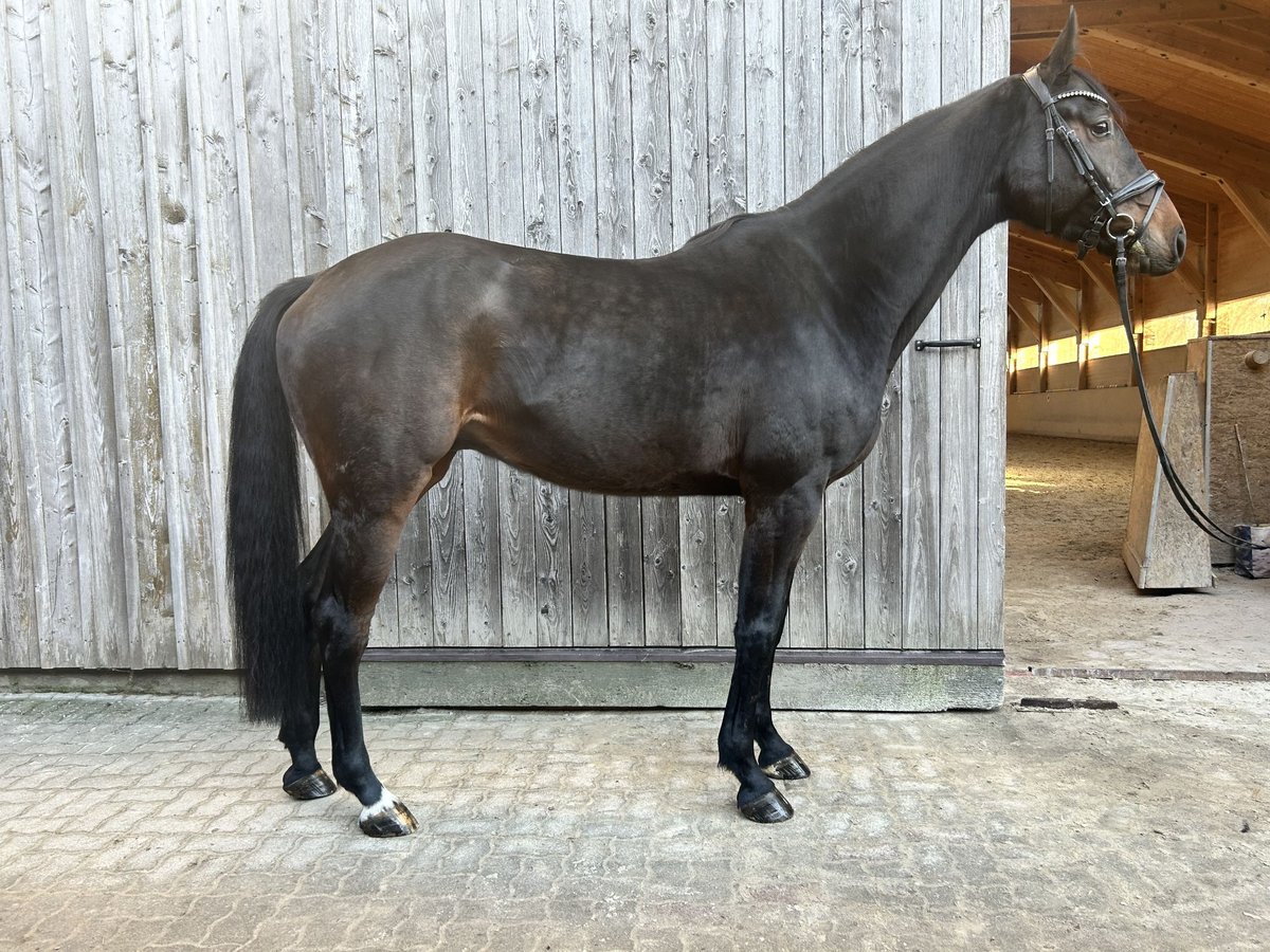 Talentierter, moderner Wallach aus springbetonter Abstammung. Altersgemäß angeritten, brav im Umgang und mit sehr guter Einstellung zur Arbeit.