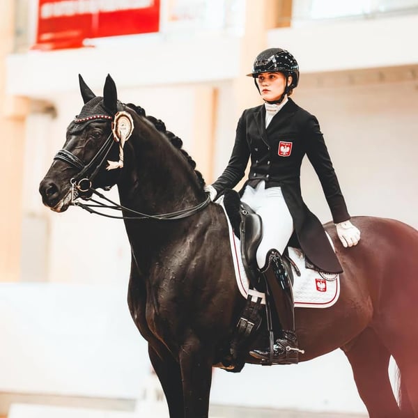 Ce magnifique hongre hanovrien noir est idéal pour tout cavalier et un parfait cheval d'école, également performant en dressage de haut niveau. Superbe hongre hanovrien d’une grande élégance, doté d’un modèle harmonieux et d’une présence remarquable. Ce cheval attire immédiatement le regard par son allure noble, sa tête expressive et ses lignes bien dessinées, soutenues par une musculature puissante et un aplomb irréprochable. Il est en parfaite santé (100 %), avec un dossier vétérinaire complet comprenant radios récentes sans aucun défaut (AKU disponible). D’un tempérament franc et équilibré, il se montre sûr, volontaire et agréable au quotidien. Débourré avec douceur et professionnalisme, ce hongre est déjà bien avancé dans son travail. Sous la selle, il se distingue par sa légèreté, sa réactivité aux aides et sa volonté constante de bien faire. Il présente trois allures de grande qualité, avec cadence, souplesse et amplitude, idéales pour le dressage. En parallèle, il révèle un excellent potentiel à l’obstacle : respectueux, courageux et doté d’une belle technique, il aborde les sauts avec intelligence et régularité. Sa polyvalence et son aptitude naturelle en font un partenaire de choix aussi bien pour le dressage que pour le saut d’obstacles. Grâce à son mental irréprochable, sa facilité d’apprentissage et ses qualités sportives, il conviendra parfaitement à un cavalier ambitieux souhaitant évoluer avec un cheval prometteur et performant dans les disciplines classiques.
