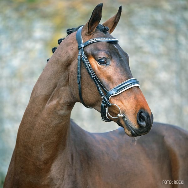 Moderno e imponente nella corporatura, espressivo nell’aspetto, elastico e con movimento ascendente. Queste caratteristiche descrivono perfettamente Santiamo GT. Sono integrate dal suo carattere socievole, che permette di gestirlo come stallone senza particolari attenzioni. Dopo un periodo di competizioni relativamente breve da giovane, Santiamo e la sua amazzone Anja Plönzke hanno iniziato a ottenere risultati significativi nel 2025, con vittorie e piazzamenti fino alla classe S**. Il 9enne è correttamente e finemente addestrato, risponde prontamente a un aiuto fine. Grazie alla sua buona attitudine al lavoro, può facilmente alternare tra esercizi di allenamento leggero e lavoro espressivo in lezioni senza agitazione. La sua andatura rimane sempre fluida, compatta, con un buon impiego di posteriori e la cadenza desiderata. È già pronto, secondo il livello attuale di addestramento, per affrontare il Grand Prix. Santiamo sarà parte della Verden High Level Auction, poiché la famiglia proprietaria del Gestüt Tannenhof desidera ridurre il numero di cavalli da dressage di alto livello e intende continuare a sviluppare i propri cavalli sotto condizioni ottimali fino al giorno dell’asta.