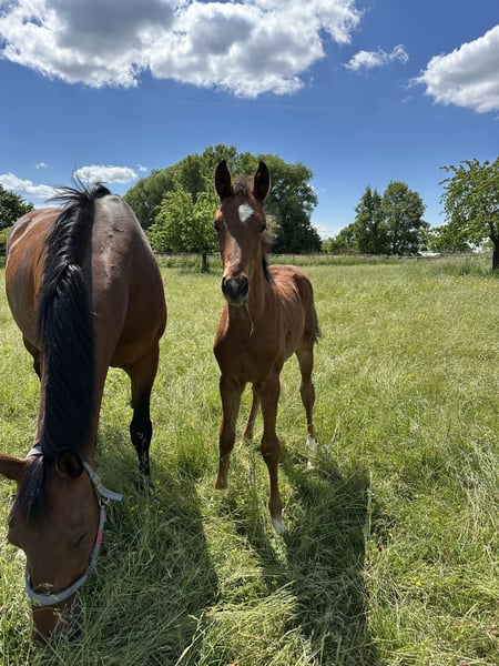 Überaus korrektes und neugieriges Hengstfohlen aus eigener Zucht. Mehr Infos zu Vater Go for Gold: https://www.ehorses.de/go-for-gold-hannoveraner-hengst-brauner-springpferd-zuchtpferd-deckhengst-dressurpferd-babenhausen/4116534.html Mutter Naomi gewann ihre Stutleistungsprüfung mit einer Gesamtnote von 8,18, und Einzelnoten bis 9,0 ( Freispringen 9,0, Rittigkeit Fremdreiter 8,5, Trab und Galopp 8,0) konnte sie auf ganzer Linie überzeugen. Sie selber ist bis Springpferde L erfolgreich gewesen bevor sie in den Zuchteinsatz kam. 1. Generation Sportpferde: Captain Sharkey v. ECL Corvo (SPR int. 1,35 m erfolgr.) Auktionspferde: Cornet's Candice v. Cornet Obolensky Fohlen-Auktion Rostock'17/12.000 €, Child of Love v Las Vegas, Online-Auktion Handorf-Extra‘20 2. Generation Sportpferde: Waikiki le Sursaut v. Kannan GFE (SPR 1,35 m erfolgr.) 3. Generation Sportpferde: Tappy le Sursaut v. Concorde (DR M erfolgr.) Weiterer Stutenstamm Sportpferde: Theodoor v. Junior STV (DR M erfolgr.), Ciwan v. Symfonie (SPR 1,30 m erfolgr.) Anfragen werden ausschließlich telefonisch oder per Whatsapp beantwortet. 0 151 41926243 Geben Sie bei Ihrer Nachricht bitte das Alter sowie die Abstammung des Pferdes an, an dem Sie interessiert sind. Bitte keine Anfragen bezüglich Ratenzahlung, Reitbeteiligung oder ähnlichem, das Pferd wird zu einem der Qualität entsprechenden Preis in fördernde und fachkundige Hände verkauft. Um Reittourismus vorzubeugen wird das Probereiten/Kennenlernen mit 30€ berechnet, bei Kauf natürlich verrechnet.