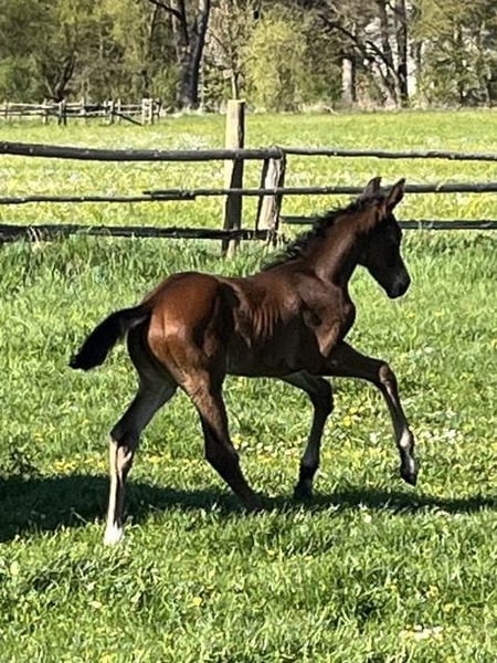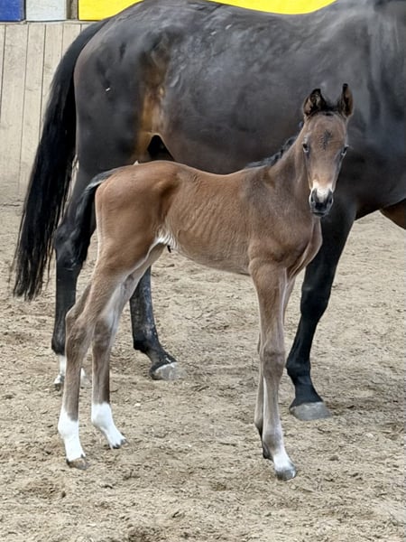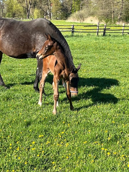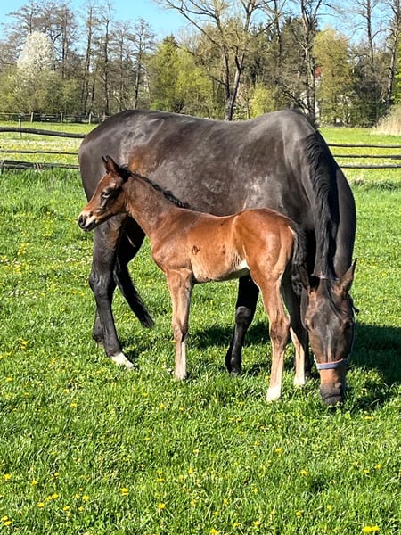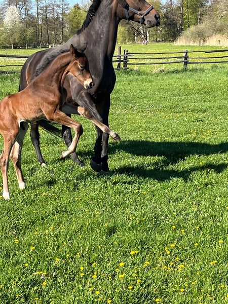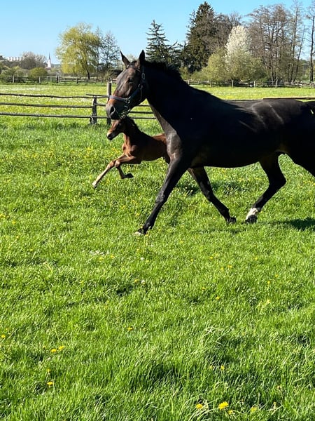 Unser typvolles Hengstfohlen, geb. am 09. April 2026, präsentiert sich als hochinteressantes Nachwuchspferd mit klarer Perspektive für den gehobenen Dressursport, sowie den anspruchsvollen Freizeitbereich. Vinci kann sich gut bewegen und ist dabei schick, elegant, langliniert und bereits gut ausbalanciert. Sein Vater Valenziano, ein junger und aufstrebender Landbeschäler des Haupt- und Landgestütes Schwaiganger, vereint moderne Reitpferdepoints mit Ausdruck, Dynamik und bester Rittigkeit. Die väterliche Linie ist geprägt durch den renommierten Hannoveraner Stutenstamm der "Juggema", der seit Generationen für Leistungsbereitschaft, Qualität im Fundament, Rittigkeit und sportlichen Erfolg steht. Stellvertretend für diesen Mutterstamm sei der Hannoveraner Hengst Desperados FRH genannt, welcher weltweit unter Kristina Bröring-Sprehe auf Championaten im Dressursport hoch erfolgreich war. Seine Mutter unsere Stammstute, Die Sonntagsfreude, hat Vinci die unverzichtbaren Eigenschaften wie Ausgeglichenheit, Klarheit im Charakter und solide Grundgangarten mit auf seinen Lebensweg gegeben. Die Stute hat entstammt dem sehr bekannten Stutenstamm der "Alferate". Für die Vererbungskraft dieser Leistungsgenetik stehen beispielsweise 55! gekörte Hengste. Insgesamt haben alle Sportpferde dieses Stutenstammes, in sämtlichen Disziplinen, über 1,9 Mio. EUR im Turniersport verdient. Unser Fohlen vereint damit beste Genetik aus zwei bewährten Leistungsfamilien. Sein freundliches, aufgeschlossenes Wesen macht ihn zusätzlich zu einem Partner mit hervorragender Entwicklungsperspektive. Wir freuen uns auf Ihr WhatsApp oder Ihren Anruf.