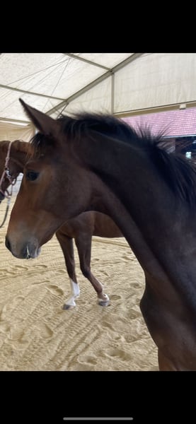 Na sprzedaż dostępny jest potężny ogier młodzieńczy o przewidywanej końcowej wysokości 175–180 cm. Prezentuje się z solidnym, mocnym fundamentem, prawidłowymi, rytmicznymi ruchami oraz dużym wyrazem. Szczególnie wyróżnia się jego klarowny, przestronny galop, który czyni go interesującym nie tylko dla wyższego poziomu jeździectwa sportowego, ale także dla najwyższej klasy skoków przez głowę. Jego zrównoważony i spokojny temperament sprawia, że jest również łatwym do prowadzenia młodym koniem w codziennej pracy. Rodowód: Macchiato x Belissimo M – obiecująca linia krwi z sprawdzoną jakością dla sportu i hodowli.