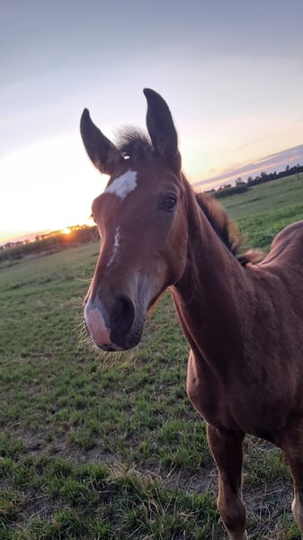 A strong-moving, elegantly presented colt by Bon Courage out of a dam by De Niro x Sandro Hit x Florestan. The foal impresses with its correct conformation, a lot of expression, and a powerful, elastic movement. The high-performance pedigree promises the best conditions for a successful career in dressage. At the foal inspection, it received a score of 9.5 twice for type and overall impression, highlighting its special quality and presence. The grandmother Serafine was a class winner at the mare show in Bruchhausen-Vilsen and a participant in the Herwart von der Decken show, which impressively demonstrates the exceptional breeding quality of this dam line.